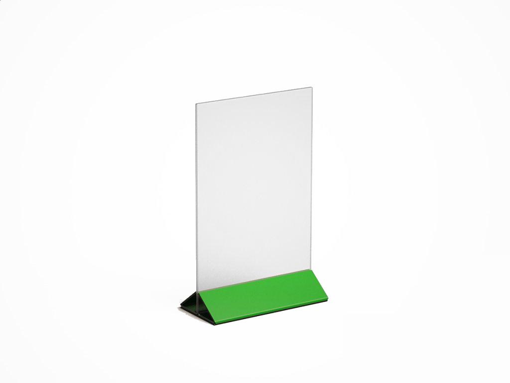 МЕНЮХОЛДЕР ФОРМАТА А-5, С НИЖНЕЙ ЧАСТЬЮ РАЗЛИЧНЫХ ЦВЕТОВ, КЛАСИЧЕСКОГО ВИДА. СОСТОИТ ИЗ ДВУХ ЧАСТЕЙ, ПРОЗРАЧНОГО ПЛАНШЕТА И НИЖНЕГО ДЕРЖАТЕЛЯ, ТРЕУГОЛЬНОЙ ФОРМЫ. ПОДХОДЯЩИЕ ИЗДЕЛИЕ, ПРИ НЕОБХОДИМОСТИ ПО ОСОБЕННОМУ ВЫДЕЛИТЬ ИНФОРМАЦИЮ. ПЛАНШЕТ ВСТАВЛЯЕТСЯ В ДЕРЖАТЕЛЬ С ВЕРХУ.
