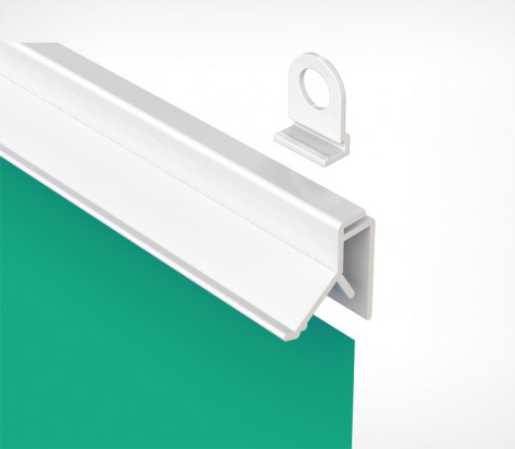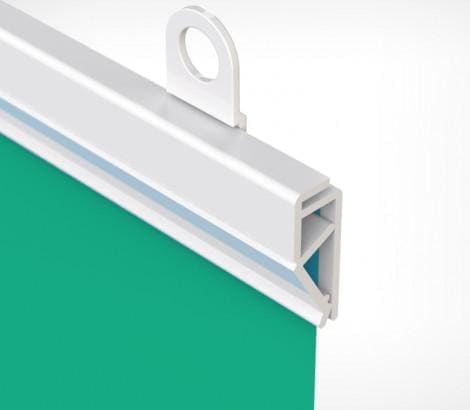 Пластиковый клик-профиль для подвешивания бумажных плакатов, тонких баннеров, плакатов на ткани. Используется с крючками CLICKER (2 крючка на 1 метр профиля). Внешние размеры ( в-т) - 20 x 6 мм., максимальная толщина вставки - 0,7мм.