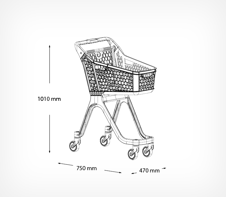 Пластиковая покупательская тележка изготовлена с учётом экологических стандартов и отличается высокой износостойкостью и долговечностью. Надёжное устойчивое основание обеспечивает стабильность даже при полной загрузке. Модель доступна в красном и сером цветах задней стенки, а также возможна кастомизация цвета под заказ. Предусмотрено место под брендирование — вставка с логотипом размером 100×38 мм.