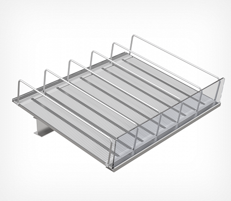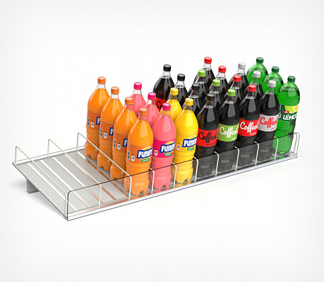 Необходим для разделения товаров на полке. Высота варьируется в зависимости от высоты товара. Высота разделителя должна быть не менее 1/3 от высоты продукта. Если полка является крайней, то для предотвращения падения продуктов используется высокий разделитель с этого края. Стандарты высот: 25 и 80 мм.