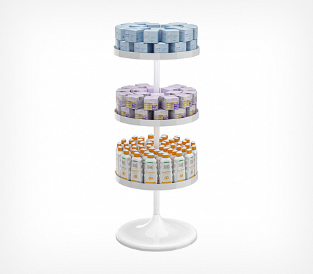 UNIBOWL-24 — дисплей-чаша для выкладки мелкого товара в кассовой зоне или на линии распродаж. Состоит из трёх элементов: прозрачной пластиковой чаши объёмом 24 литра, металлической опорной ножки и широкого пластикового основания. Прозрачная чаша цельнолитая, что гарантирует её надёжность и долгую эксплуатацию. Цвет основания и ножки — белый. Высота собранной конструкции — 776 и 950 мм, диаметр — 460 мм. Позволяет использовать дополнительные элементы, например держатели информации и разделители товара внутри чаши (поставляются отдельно).
