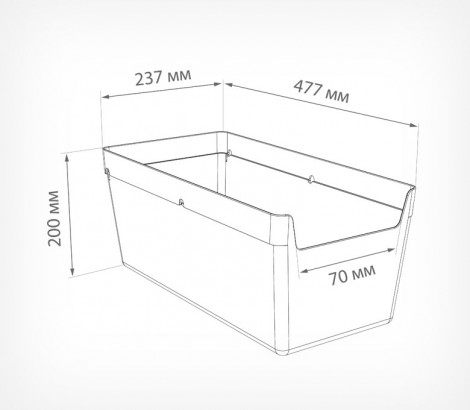 Универсальный накопитель для выкладки сыпучих или мелких товаров – оптимальное решение для магазинов формата супермаркет с продажей весовых продуктов, аптек и косметических магазинов и других магазинов, сталкивающихся с выкладкой мелких товаров. Легкая очистка благодаря закругленным углам.