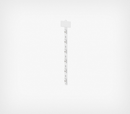 Топпер для подвесной пластиковой страйп-ленты. Предназначен для крепления пластиковой страйп-ленты и размещения ценников или рекламных наклеек. Используется вместе со страйп-лентой для товаров в небольшой упаковке без отверстия для подвеса. В верхней части топпера предусмотрено отверстие для крепления с помощью специального металлического крючка для страйп-лент или хомута.