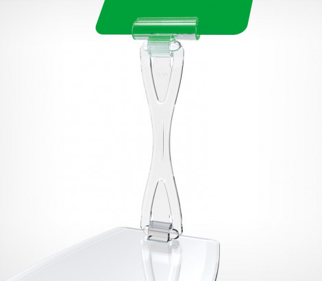Компонент Дели-системы, держатель соединительный, используется в комбинации с подставкой или с держателем для посуды как соединитель с изменяющимся углом наклона ценника. Позволяет регулировать угол наклона и высоту ценника.