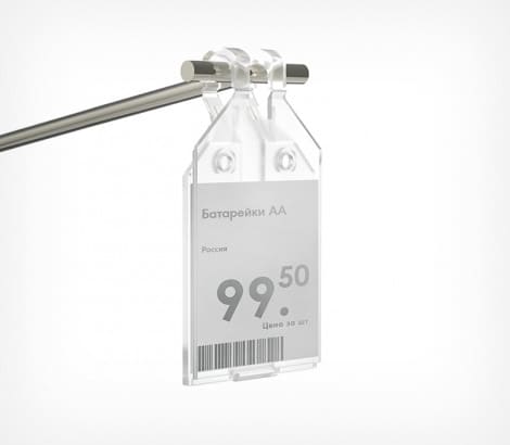 Откидной ценникодержатель на крючок с двумя крепежными петлями (тип «майка»). Отличие от PP-TAG в способе крепления: PP-TAG-SLIM защелкивается в нижней части изделия. Крепежные петли позволяют использовать ценникодержатель как на двойном крючке, так и на Т-образной консоли.