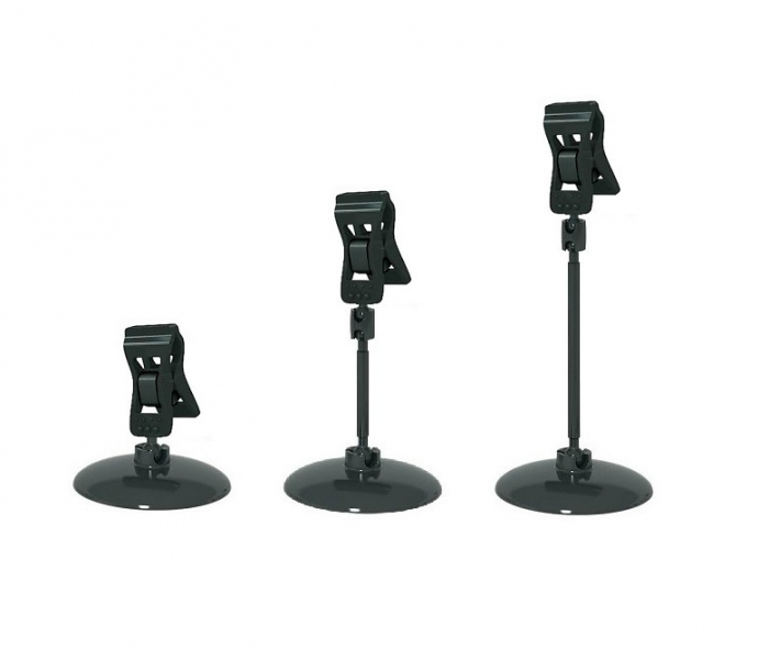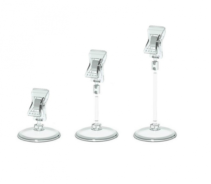 Держатель ценника или таблички с прищепкой на круглой подставке. Универсальный держатель, позволяющий закрепить ценник или табличку толщиной до 10 мм.