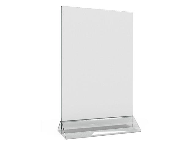 Прозрачный Менюхолдер, класического вида. Состоит из двух частей, планшета и нижнего держателя. Планшет вставляется в держатель сверху. При необходимости можно менять детали по отдельности. Детали можно выбрать в нашем каталоге.