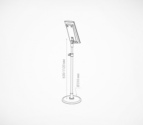 Основание для напольной информационной стойки на 10 рамок DATAFRAME формата А-4. Регулируемый угол наклона держателя рамок. Диапазон в котором изменяется высота изделия: от 950мм (в крайнем нижнем положении) до 1450 (в верхнем)