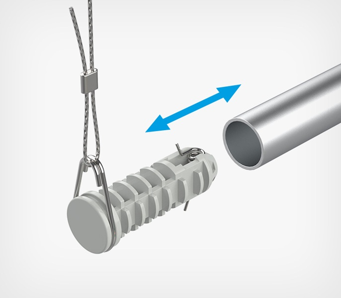 Заглушка пластиковая для профиля AIRTRACK - предназначена для закрытия торцов профилей системы AIRTRACK. Имеет встроенную металлическую петлю и пружину, которые обеспечивают надёжную фиксацию внутри трубки. Петля позволяет легко подвесить систему AIRTRACK к потолку с помощью троса или цепи