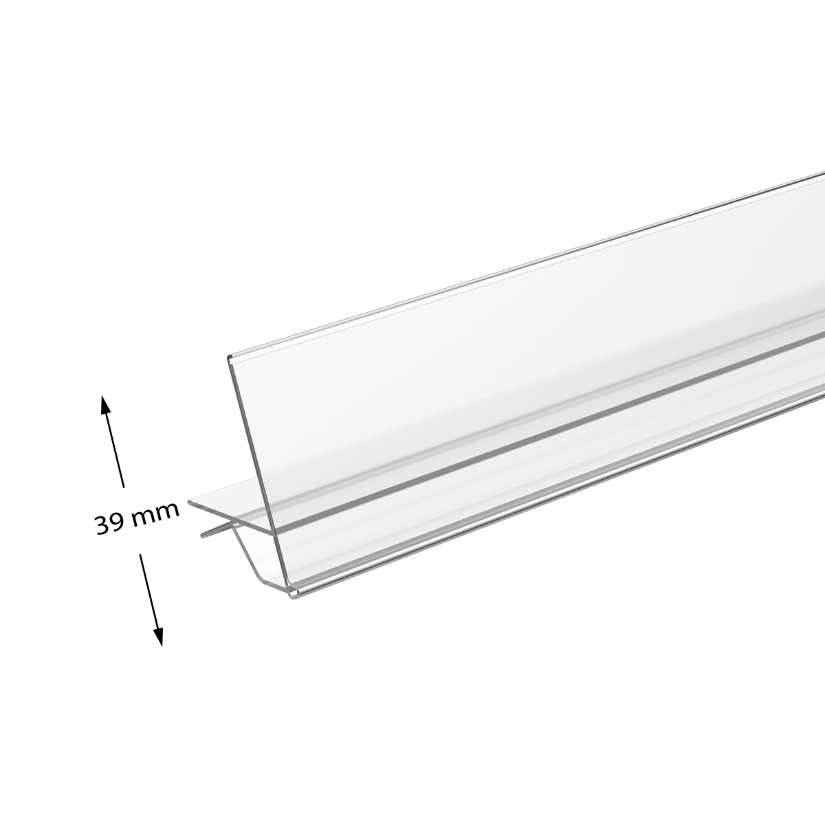 Ценникодержатель GLL-39 незаменим для размещения ценников на стеклянных и деревянных полках толщиной 4-6 мм в аптеках, магазинах косметики и парфюмерии, и т.д.