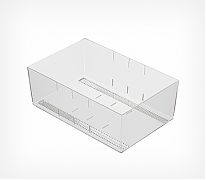 Универсальный накопитель с регулируемыми разделителями идеально подходит для эстетичного размещения фасованных продуктов шириной до 180 мм: упаковок колготок, канцелярии, товаров для животных, косметики и т.п.